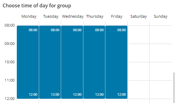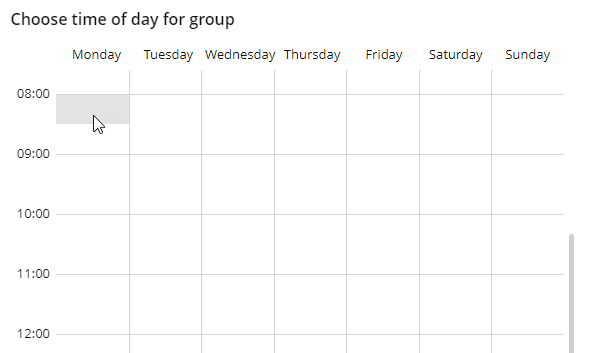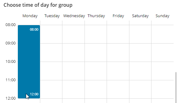 Drag the mouse arrow to the hour when this timeslot ends (for example, Monday at 12:00), and then release the mouse button.