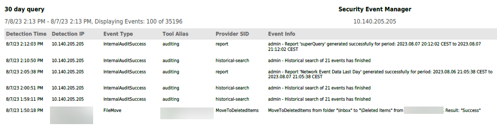 The following example provide a partial example of a 30 day query report.