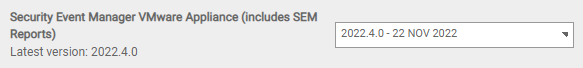 Access the Customer Portal and download the Security Event Manager VMware Appliance installer. This installer includes a SEM version that you select in the portal.