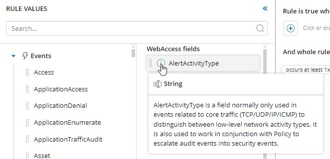 When you create a new rule, you can mouse over the event to access the contextual help for the event.