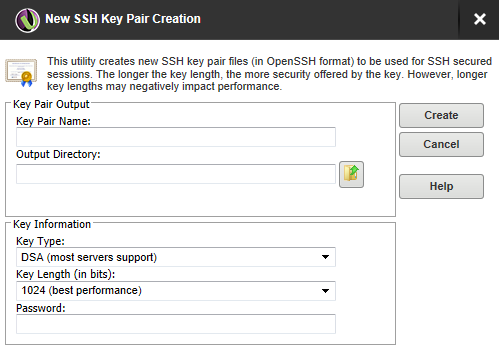 - A SSH key pair is created on the client computer using a utility such as PUTTYgen or openssh. You can use RSA or DSA keys.
