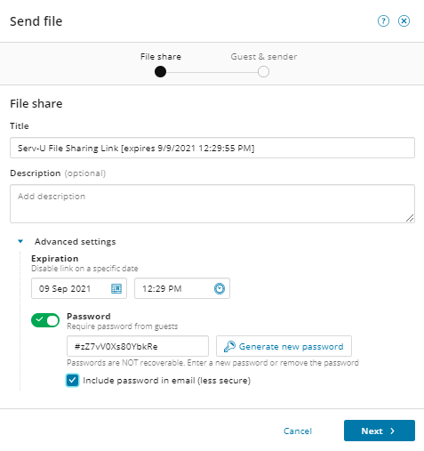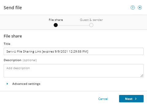 Serv-U file sharing: The Send file wizard