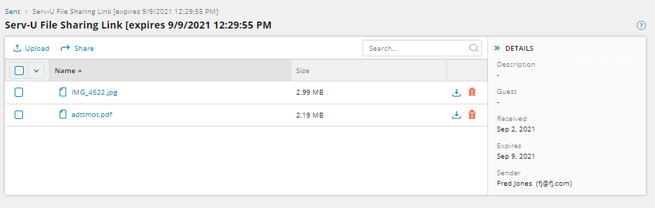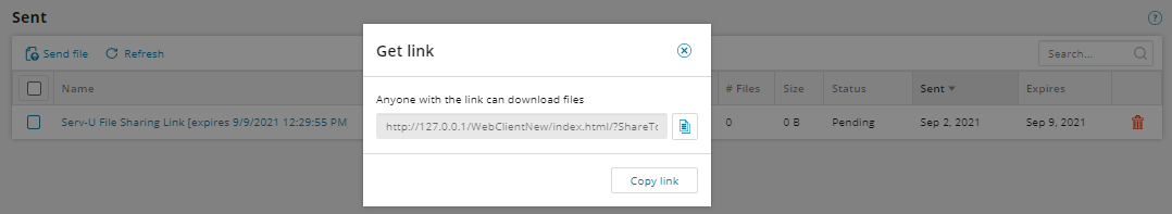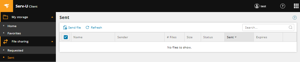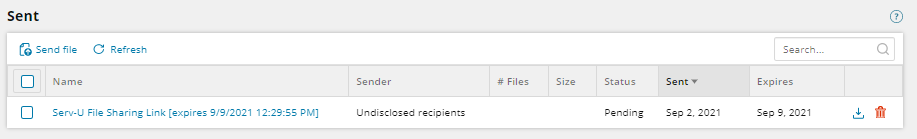 - Navigate to the File Sharing - Sent page.