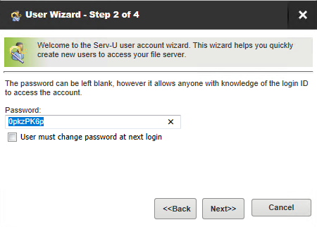 You can also specify a name and email address for the user account. The email address is used by Serv-U to send email notifications and recovered passwords to the user account.