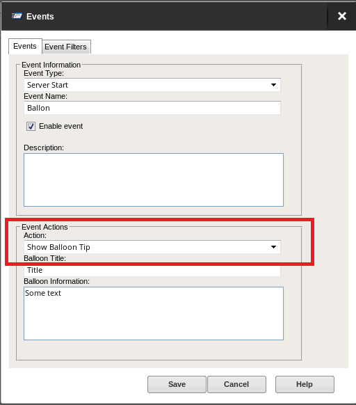 By design, Serv-U does not have a GUI inside it; instead, all balloon notifications are displayed by the Serv-U Tray application as part of server events notification. Thus, the Tray application must be started to display balloon tip notifications.