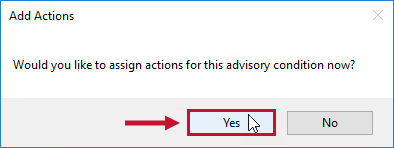 Select Yes to open the Actions Selector and add Actions to your Advisory Condition or select No if you don't want to add any Actions.