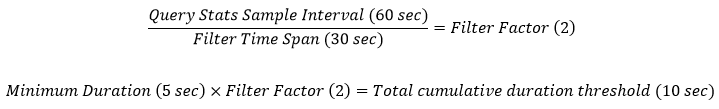 | Filter Factor | The Filter Factor is calculated by dividing the Query Stats Sample Interval by the Filter Time Span. The collection filters such as Minimum Duration are multiplied by this value when applied to Query Stats collection. |