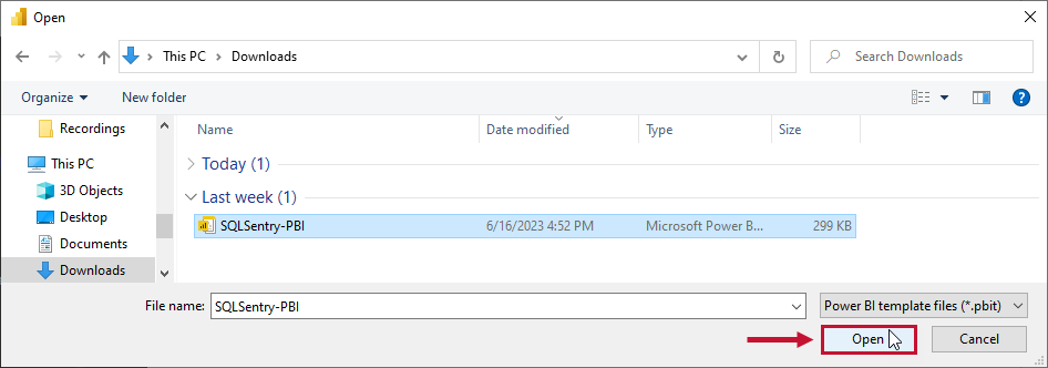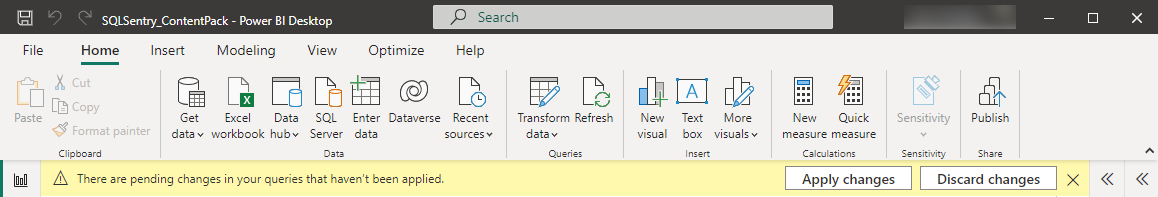 Download: Get a copy of the SQL Sentry Content Pack PBIT file from SolarWinds Support.