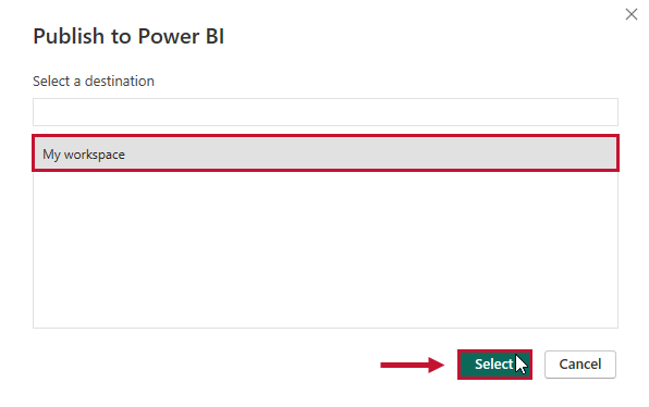 Select File > Publish > Publish to PowerBI to publish your report in the PowerBI app. Choose the desired destination and then click Select to finalize your publication to PowerBI.
