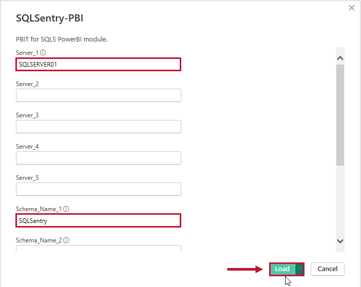 Enter the number of SQL Sentry Databases you connect to in the ReportingServers parameter, and then select Load.