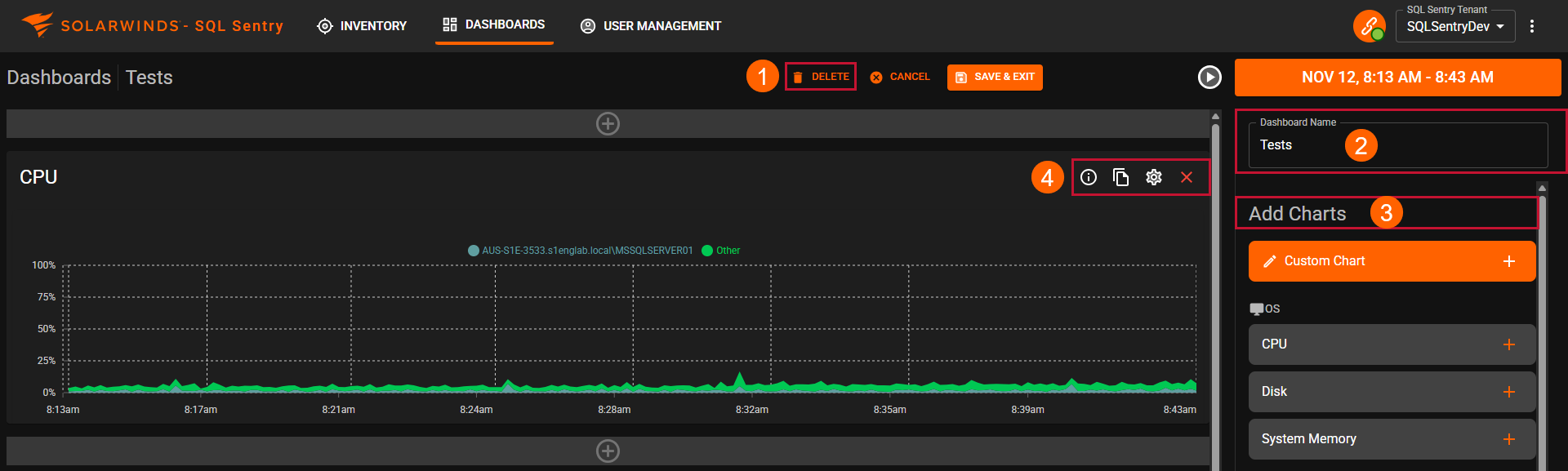 To create a Custom Dashboard in SQL Sentry Portal, complete the following steps: