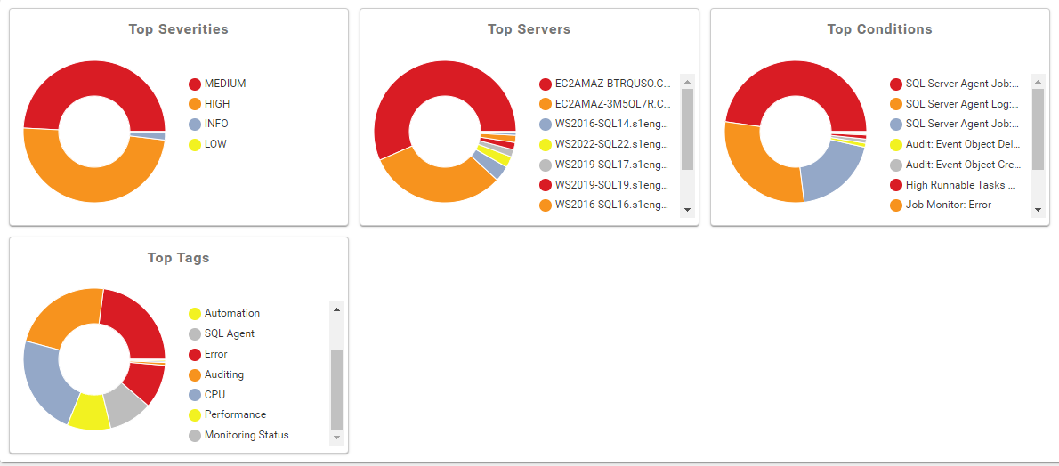 Select an option from any of the Top Severities, Servers, Conditions, or Tags charts to filter the Alerts Log by your selection.