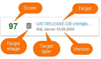 Each server within your environment is displayed as a card with the health score, target image, target name link, target type, and version number. Click the Target name link to open the Health Overview for that target.