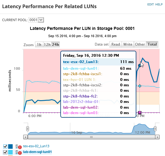 - Look at the Latency Performance Per Related LUNs on the same page.