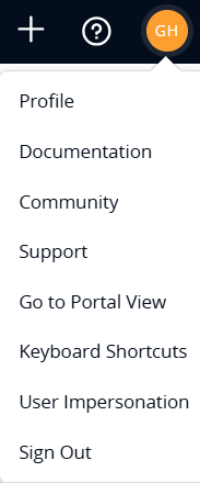 User Impersonation opens the User Impersonation window, where authorized users can select which user to impersonate and then start an impersonation session. See User impersonation.