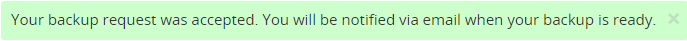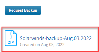 Upon receipt of the email, a new version of the backup zip file will display directly below the Request Backup button. The date on the zip file is the date of the request for backup.