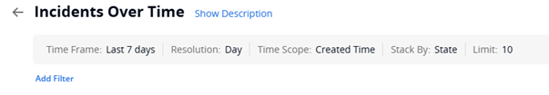 | Heatmap | View the distribution of the created incidents over the hours of the week. |