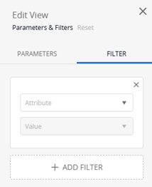 Filter tab. Select an attribute from the dropdown list and a value if appropriate. Add more filters as needed.