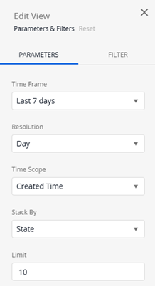 | Ticket Forwarding Breakdown | ESM customers can see statistics for tickets that were forwarded to or from a specific service provider. You can click Edit and select the Parameters tab to see the time scope (time ticket was forwarded) and change the time frame parameter (last 7 days, last 14 days, etc.) as needed. |