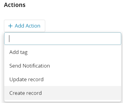 It is important to populate all mandatory fields or the Create Record Action will fail.