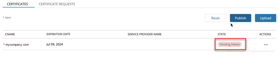 | Pending Upload | Indicates that the upload of your certificate is pending until the next publish. |