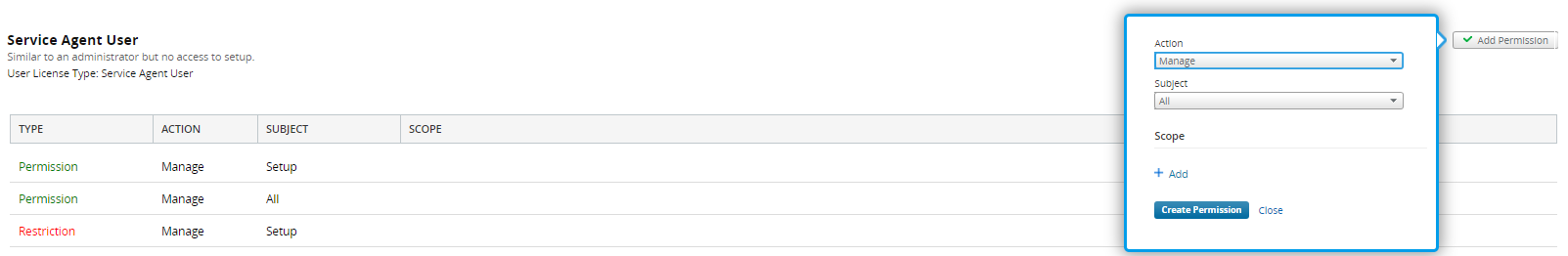 Click Add Permission. From the Action dropdown menu select an action, and from the Subject dropdown menu select Change Catalog. Click Create Permission to save changes made.