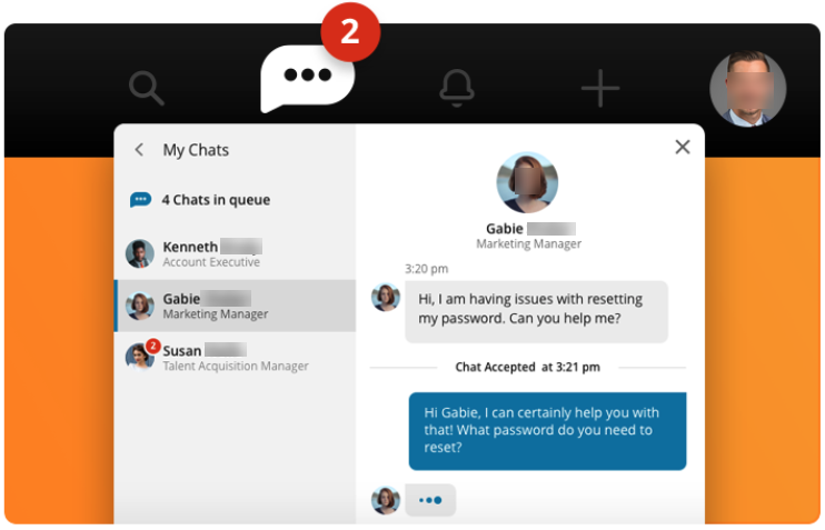 In Service Desk, you can provide your customer end users with a fast, efficient method to engage with IT support. The Chat feature delivers instant access to agents who can offer assistance and resources to ensure smooth workflow productivity.