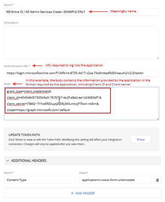 Example 2: Service Desk credentials for Microsoft Entra ID
