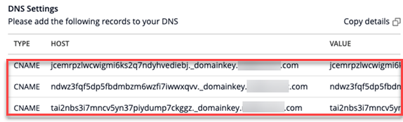 There you can see three CNAME records.