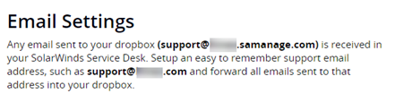 Your company's account has a default global email dropbox address that is used for all email communication. You can find your dropbox address at the top of the Email Settings page.