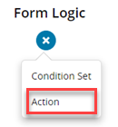 Define the relevant Actions. With or without condition sets you can set actions to run on fields in the form. To add a new action: