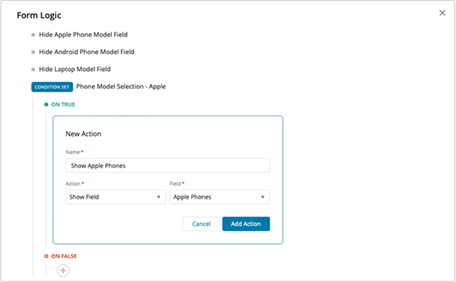 In Service Desk, form logic enables you to control when fields are displayed, hidden, required, or optional according to conditions based on other fields located on the same form. The form logic feature provides an efficient way to collect and validate context dependent inputs when users enter data into forms.