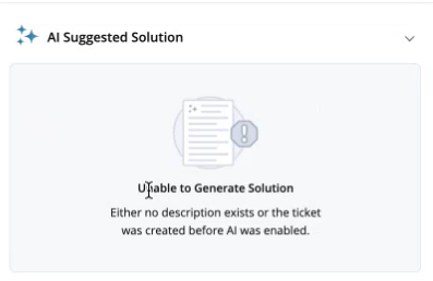 In tickets, suggested solutions appear to the right. You can click the dropdown arrow to see the suggested solution or a reason why no solution is generated.