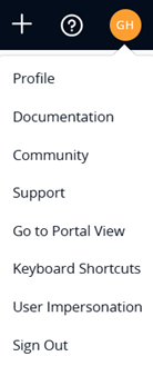 To navigate to the user profile card, click your user icon in the top right of the screen to reveal a dropdown menu, and then select Profile.