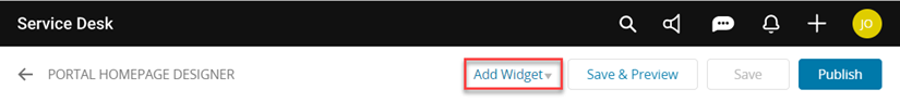 - In the open Portal Homepage Designer, you can add ore remove widgets to customize your home page.