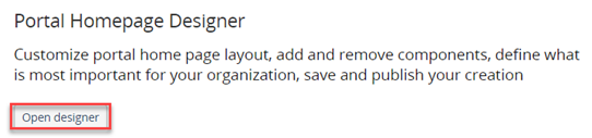 - Under Portal Homepage Designer, click Open designer.