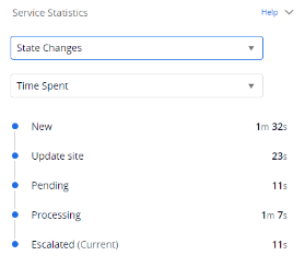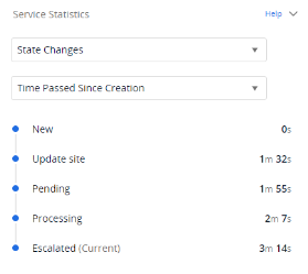 For high-level statistics, if the state has changed multiple times to the same state, the counter displays the time passed from creation to the most recent change.State Changes provide a historical account of state changes, reflecting the lifecycle of the incident, problem, or change as it transitions from one state to another (for example, from New to Assigned), showing both the time spent in each state and the time elapsed from creation to each specific state.