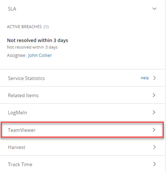 From in incident, in the right pane, click the arrow next to TeamViewer.