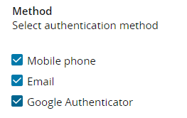 - Under Method, select the method(s) of authentication. You can select one, two, or all three options listed.