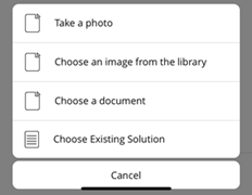 Add attachments. Tap the Type your Incident index field, then tap the paper clip. There you can attach a photo, an image from the library, a document, or an existing solution. Attachment file size is limited to 25MB and all file types are acceptable. Tap paper clip Choose attachment type