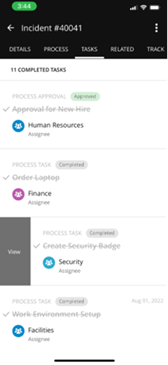 From the Tasks tab you can see tasks associated with the incident. You can swipe right on any task to view more information about the task.