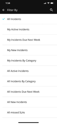 When the mobile application opens, by default it opens to a list of incidents and service requests.