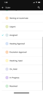 Change the state. Tap the current state and select the new state from the list that displays. Tap current state Select new state from list