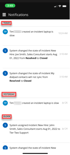 When you tap the notification, the mobile app will take you to the specific item the notification was created about. For example, the incident, change, request, or other object.