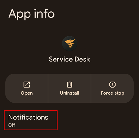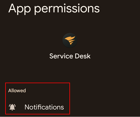 The Service Desk Notifications module in the mobile application provides a list of notifications the user has received.