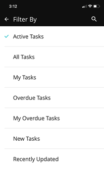 From the list of modules, select Tasks. The list of all active tasks displays.