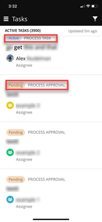 From the list of tasks, you can see the status of the task and its type. You can also see the assignee.