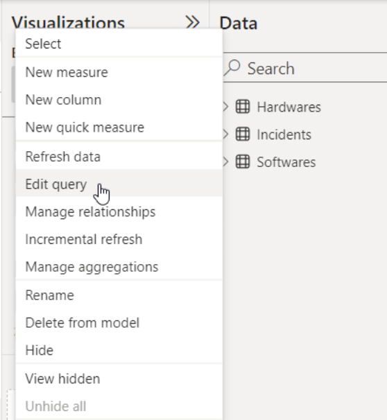 Go to the Incidents model, and right-click Edit query. A Power Query Editor opens.
