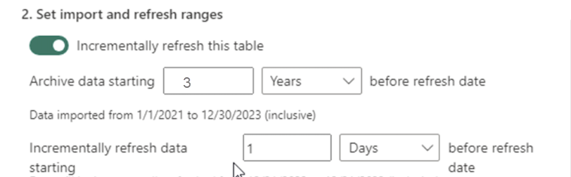 You can refresh each semantic model for the first time. The refresh downloads the archived data you defined in the incremental refresh policy (records from a maximum of 2 years ago).