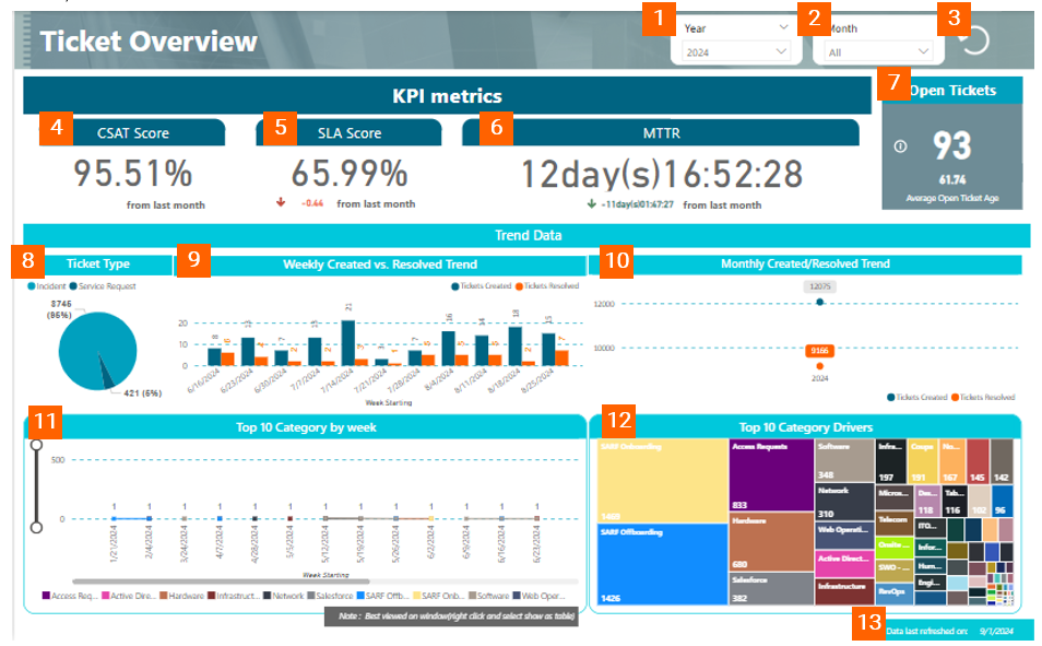 | 12 | Treemap | Count of tickets by top 10 categories |